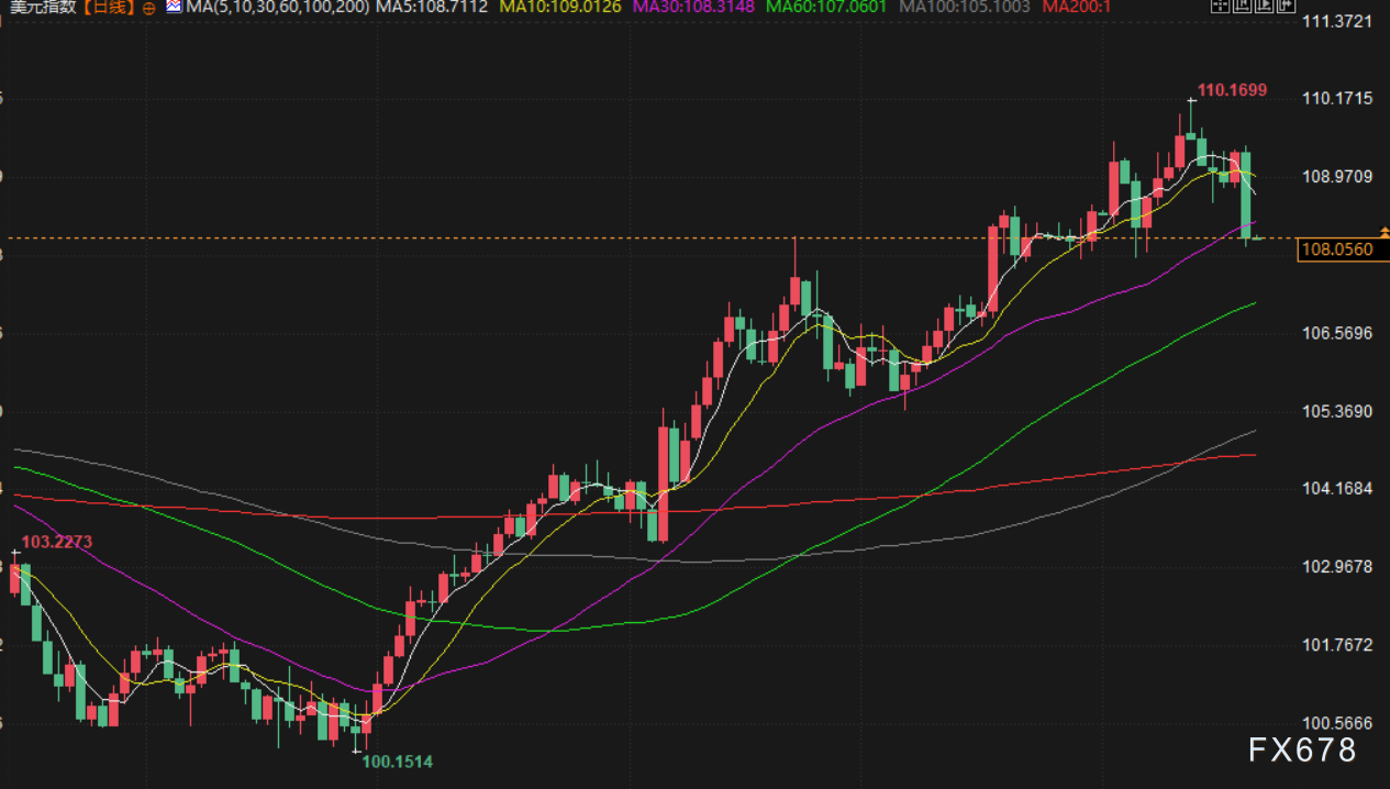 美元指数跌幅一度高达 1.3%,报 108.23。该指数上周触及 26个月最高的 110.17。由于美国市场因马丁-路德-金纪念日假期休市,交易量较平时有所减少。